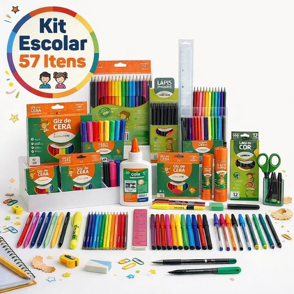 - Itens escolares complementares (variam conforme o modelo)